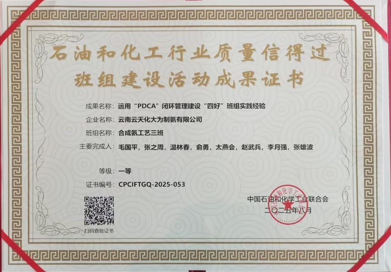 其中,水富PG电子下载 检修一班QC小组《降低小空分1114JB曲轴箱润滑油金属颗粒含量》与凌云QC小组《降低硫酸装置焚烧炉天然气消耗》课题,凭借卓越创新与扎实实践,双双荣获一等成果。磷化集团晋宁磷矿无极限QC小组获评质量管理小组活动一等成果。天安化工“自控信息部”“硫酸业务工艺四班”“生产技术部磷化工分析室”“合成氨制造中心工艺二班”等7个班组获质量信得过班组一等成果。大为制氨合成氨制造中心工艺三班的《运用“PDCA”闭环管理建设“四好”班组》、生产技术部原料成品分析班的《推行“3331”质量管理法提升班组质量管控能力》两歌课题均摘得一等成果。红磷化工硫酸装置长周期高效运行项目部以《抓质量 强管理 打造长周期高效运行团队》成果,获评一等成果。